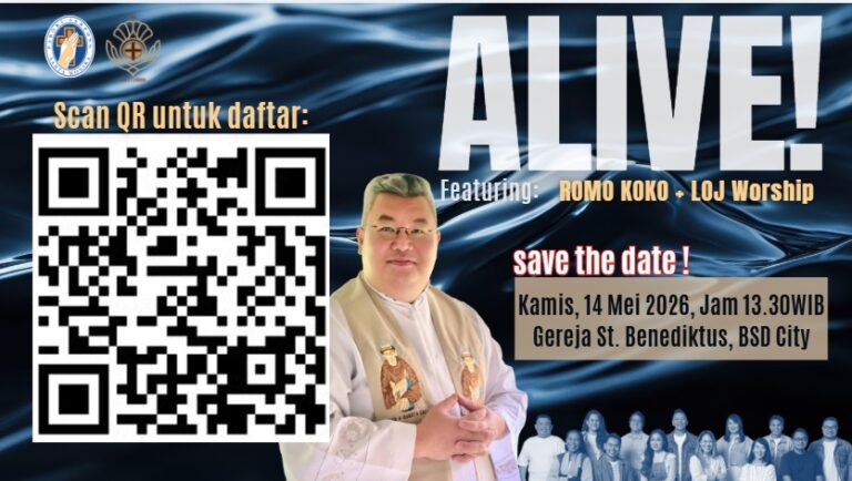 “Romo Koko SCJ di sini dan saya mengundangmu untuk masuk surga. Caranya? Dengan berpartisipasi dalam charity untuk pembangunan Gereja Santo Benediktus di BSD. Kita bersyukur gereja sudah memasuki tahap akhir.