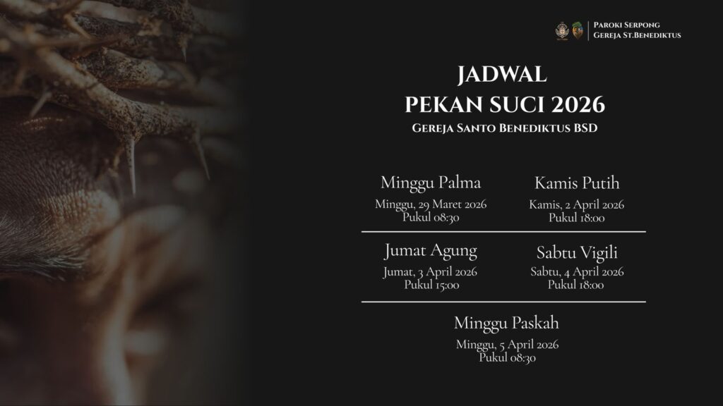 Berikut adalah jadwal lengkap rangkaian ibadat Pekan Suci 2026 di Gereja Santo Benediktus BSD: